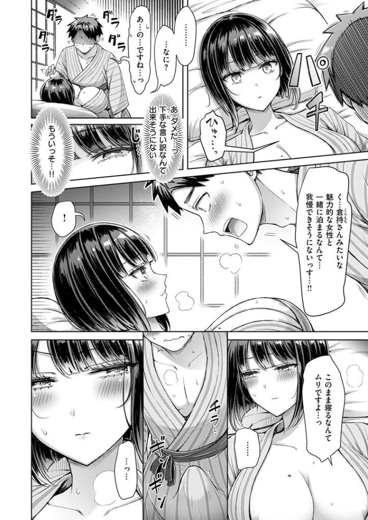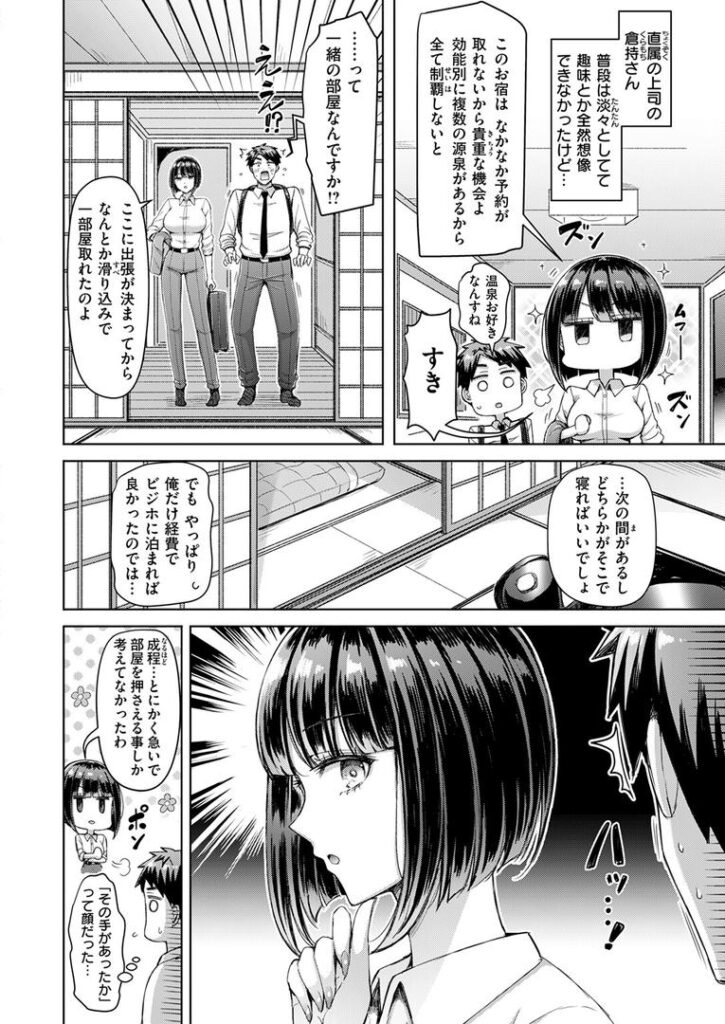 地方への出張を無事に終え、若手社員の川瀬が上司の倉持に連れられてやってきたのは、風情ある立派な温泉宿でした。